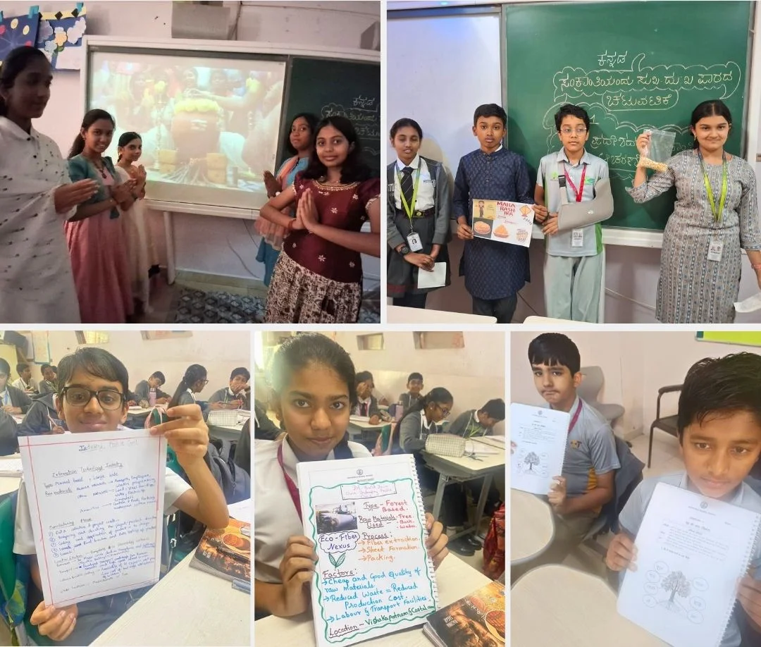 Our Grades 6–8 students engaged in exciting, hands-on activities across Social Studies, Kannada, and Hindi. From City Builders and Desert in a Bottle to researching industries, exploring Sankranti celebrations, understanding plant life cycles, and learning about the Jal Chakra (Water Cycle)—every activity made learning interactive and meaningful.