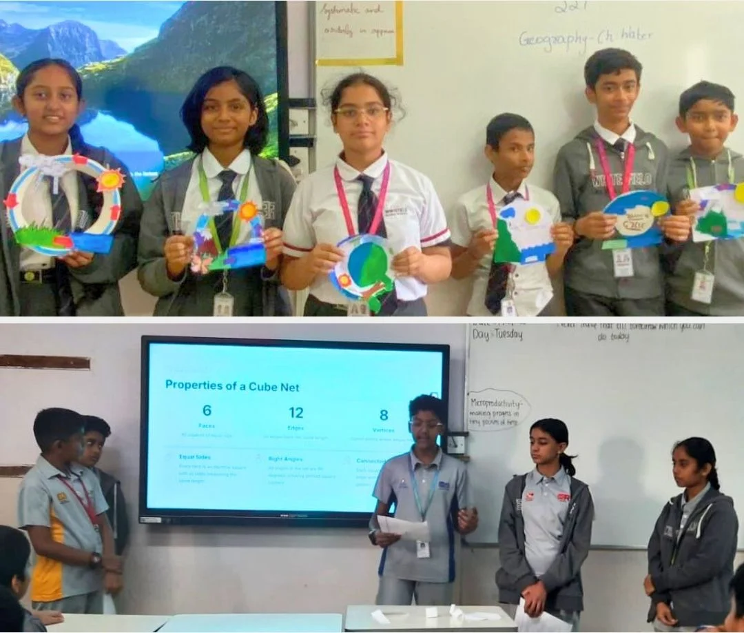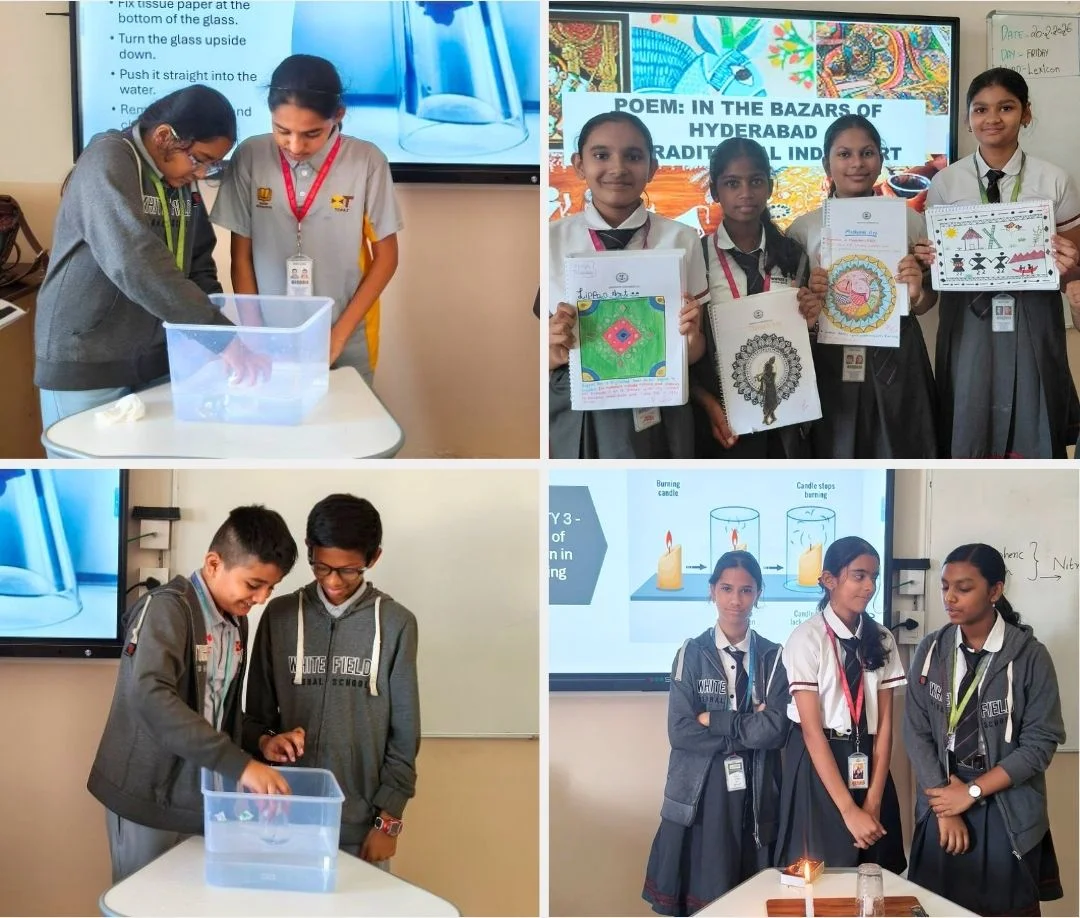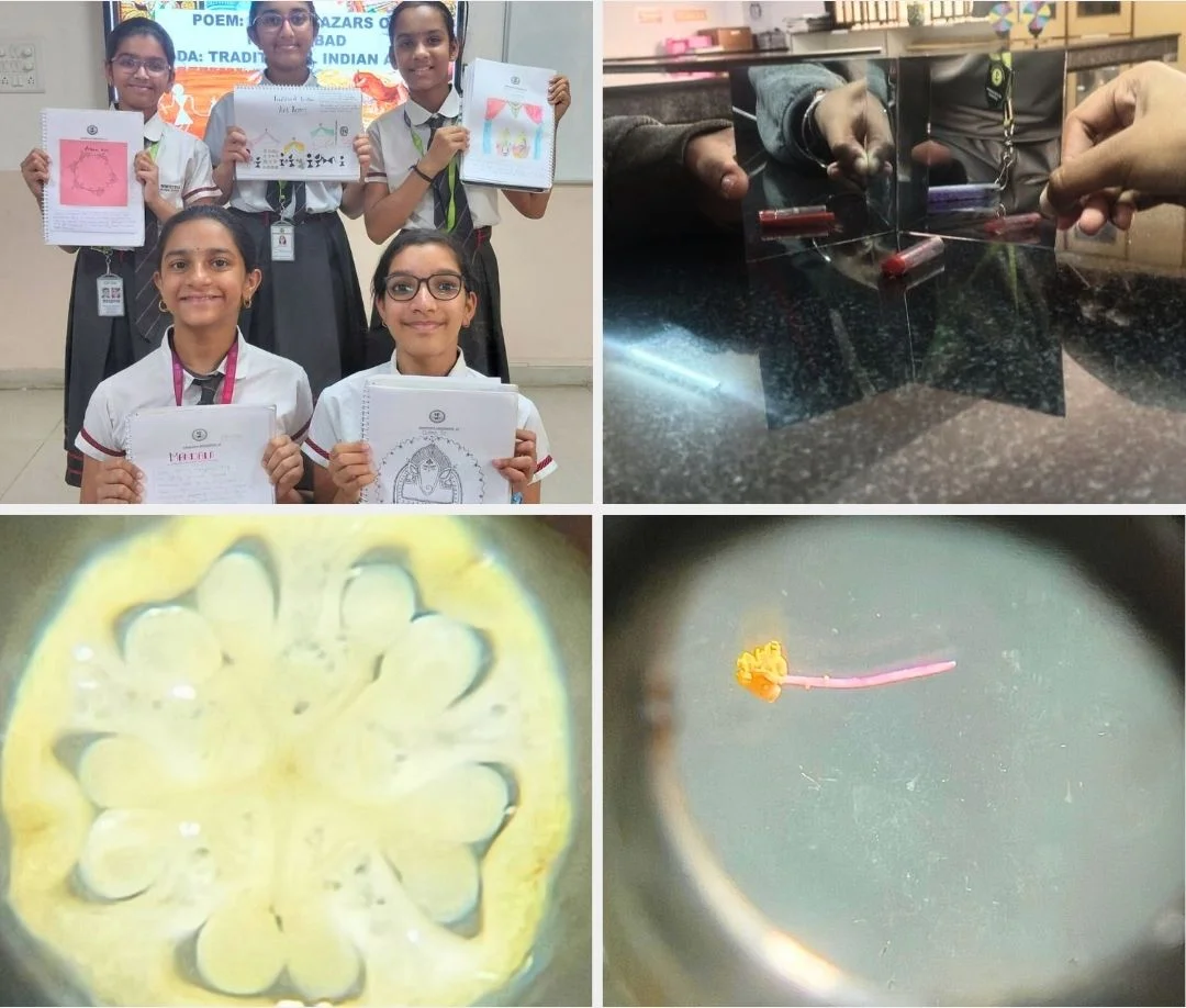 Students from Grades 6–8 engaged in exciting activities that made learning interactive and meaningful. From exploring traditional Indian art, science experiments, and map activities in Grade 6, to symmetry concepts, flower dissection, and water cycle models in Grade 7, students demonstrated creativity and curiosity.